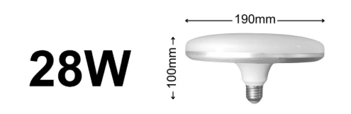 Description Description Dycorra E27 Single Color LED UFO bulb 28W (Daylight) Power: 18W Lumens: 3680lms Light color: Daylight 6500K Beam Angle: 120° View AllClose